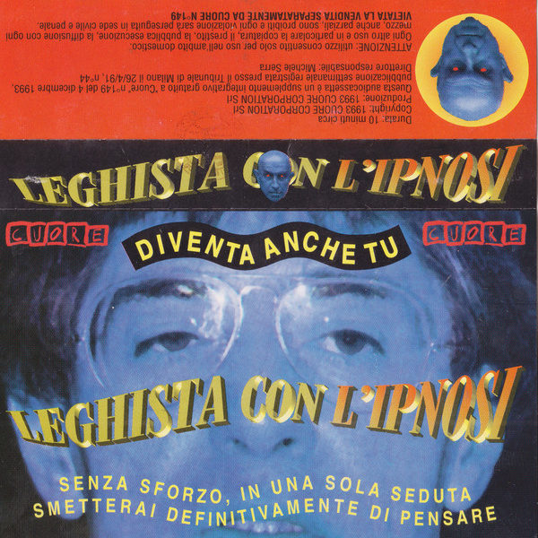 Era il 1993, precisamente il 4 dicembre 1993 quando l’audiocassetta Diventa anche tu leghista con l’ipnosi usciva in allegato al numero 149 della rivista Cuore. Sono passati 25 anni e sembra che l’Italia abbia subìto pesantemente gli effetti di questa potentissima cassettina ipnotica. Che sia un altro caso di intenzioni fraintese come in Povera Patria?